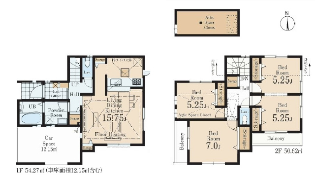 東京電力、都市ガス、公営水道、公共本下水、駐車場、駐車場2台分、フラット35S、地盤保証20年、床暖房、システムキッチン、浄水器、3口以上コンロ、追焚機能、浴室乾燥機、浴室暖房、シャワー付洗面化粧台、トイレ2ヶ所、温水洗浄便座、24時間換気システム、モニター付インターフォン、シャッター雨戸、ペアガラス、照明器具、火災報知器、人感センサー、クローゼット、全室収納、床下収納、シューズBOX、バルコニー、小屋裏収納、2路線利用可能、2駅利用可能、パントリー