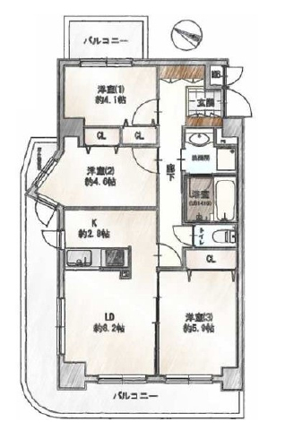 3LDK 鉄筋コンクリート造(RC造) |