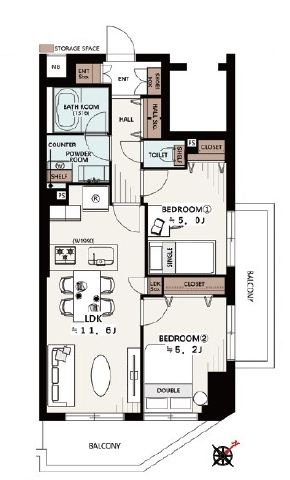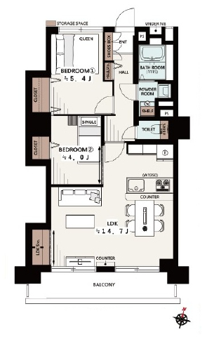 2LDK 鉄骨鉄筋コンクリート造(SRC造) |