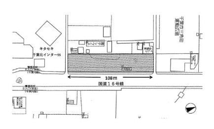 千葉北I.C300m 国道16号線に108.73m接道 3方角地 更地 5億2000万円